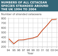 So here's my take on it; it's a protest. Now hang on a moment, don't write this off without thinking about it! Whales and dolphins have been shown to be very sociable animals, and social interaction indcates intelligence. It's an intelligence that we do not understand as humans and we have no way to communicate with them. Sure we can teach them a few tricks but that's not meaningful conversation. So given that these creatures are intelligent, what does an intelligent animal do when faced with a problem? It indicates to others what is going on. What is the problem? well one big problem is going to be lack of food, we humans are over-fishing all areas of the sea around the world. We are also polluting the seas and destroying natural habitats such as coral reefs. This will not only have an effect on the creatures that eat the same fish that we do, but will also upset the whole ecosystem. The whales and other large sea mammals are living in a sea that is very different from how it has been for thousands of years. They were in balance with their world, but that has changed. We have changed it. So given that there is a problem, and that those facing it are intelligent, what does an intelligent creature do? When humans collectively dislike something that is going on, we protest. That protest could take many shapes or forms, as we understand many types. One of the nastiest kind of protests is in a prison situation, where people go on hunger strike. They feel that this is the only way to get some attention. without the ability to talk something over, a display of life and death is often the only way to get noticed. How do the iraqi people get attention to their cause? They kill a few westerners. People also have a habbit of offering their own deaths so that it may carry a message, martyrdom is common throughout our history. Death it seems is a good indicator that something is very wrong with the status quo. Looking at the whales I have to make one assumption; they are intelligent, then the rest falls into place. The sea has become a prison for them, and they are unhappy with it's condition. They see us rightfully as the cause of the problem. So how can they tell us that they have a problem? They beach themselves and die in protest. Why aren't people interpreting their sacrifice? I think it's primarily because we don't see them as intelligent. If we did, we'd try to interpret their act. So scientists look for scientific reasons rather than social ones. If a bunch of humans deceided to all kill themselves to prove a point, we'd interpret it as a message, not a problem with the weather conditions, navigational errors, un-natural herding, foolishly chasing prey, or electronic equiptment messing with their brains. There would be no reason for humans to intentionally stick a knife in their cheast so there can't be a reason for whale to intentionally beach themselves. But wait; humans do this, time and time again humans kill themselves to make a point. We are amazing at deluding ourselves! So what will it take for the whales to get noticed, what will it take for us to see that they are trying to tell us something? Nothing short of a global beaching, if all the whales in all the world beached at the same time across the globe, surely that would be interpreted as a message, and we wouldn't just help them back into the sea thinking it was a mistake?